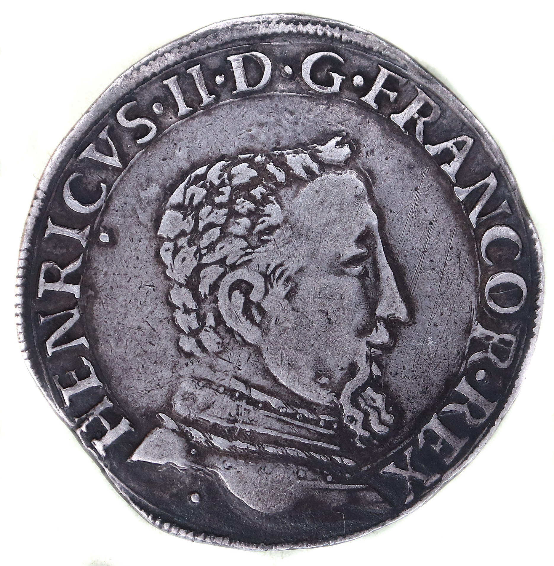 HENRICVS.II.D.G.FRANCOR.REX. HENRI, par la grâce de Dieu, roi des Francs Buste du roi tête nue à droite avec cuirasse; |