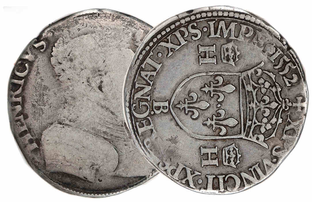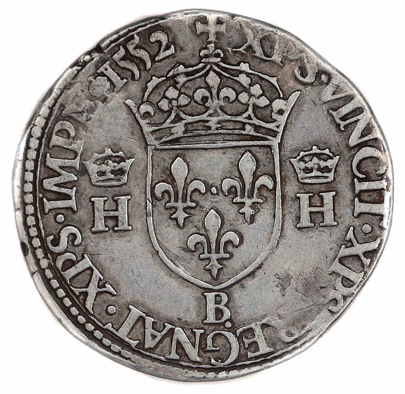 Lettre d'atelier : B (au revers sous l'écu) Point secret : 15éme (au revers) Millésime : 1552 Chiffre de frappe connu : 30