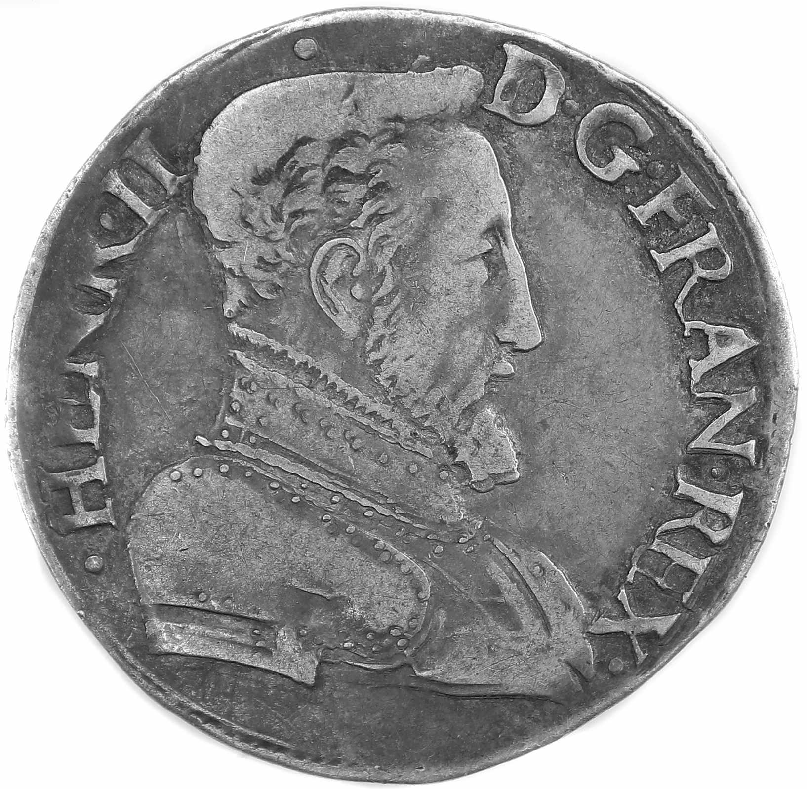 HENR.II..DG.FRANC.REX Henri II par la grâce de Dieu roi des Francs Buste du roi, tête nue, cuirassé à droite |