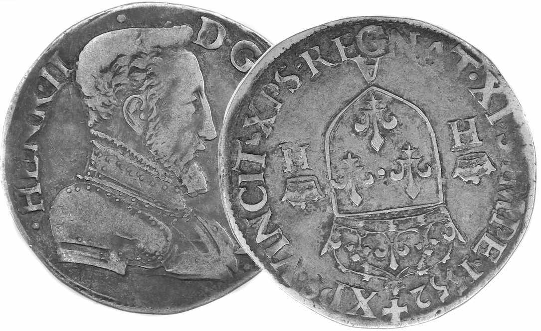 (tête nue du 1er type) furent frappés à PARIS de 1552 à 1555. De