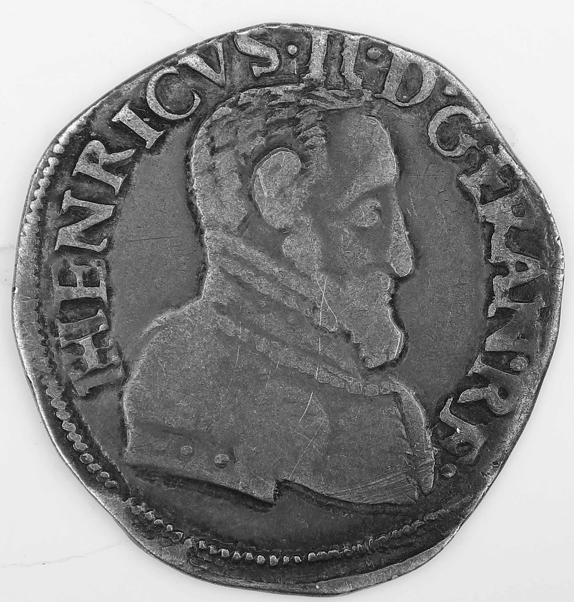 HENRICVS.II..D.G.FRAN.RE Henri II par la grâce de Dieu roi des Francs Buste du roi, tête nue, cuirassé à droite |