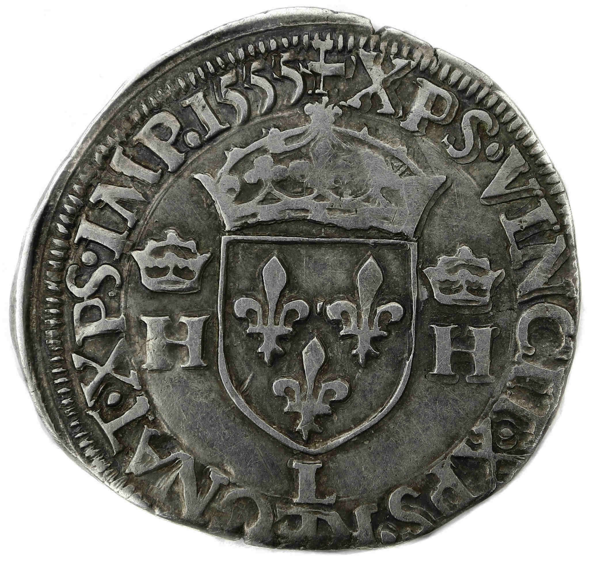 Lettre d'atelier : L (au revers sous l'écu) Point secret : Non Millésime : 1555 Chiffre de frappe connu : 78