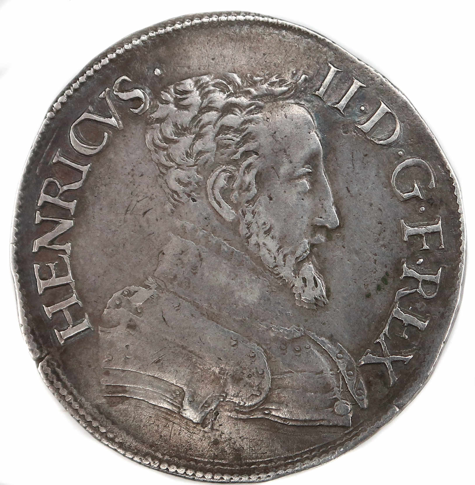HENRICVS.II..D.G.F.REX Henri II par la grâce de Dieu roi des Francs Buste du roi, tête nue, cuirassé à droite |