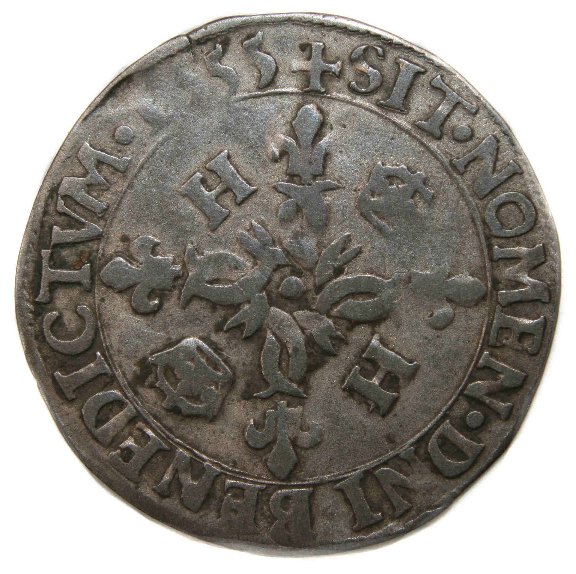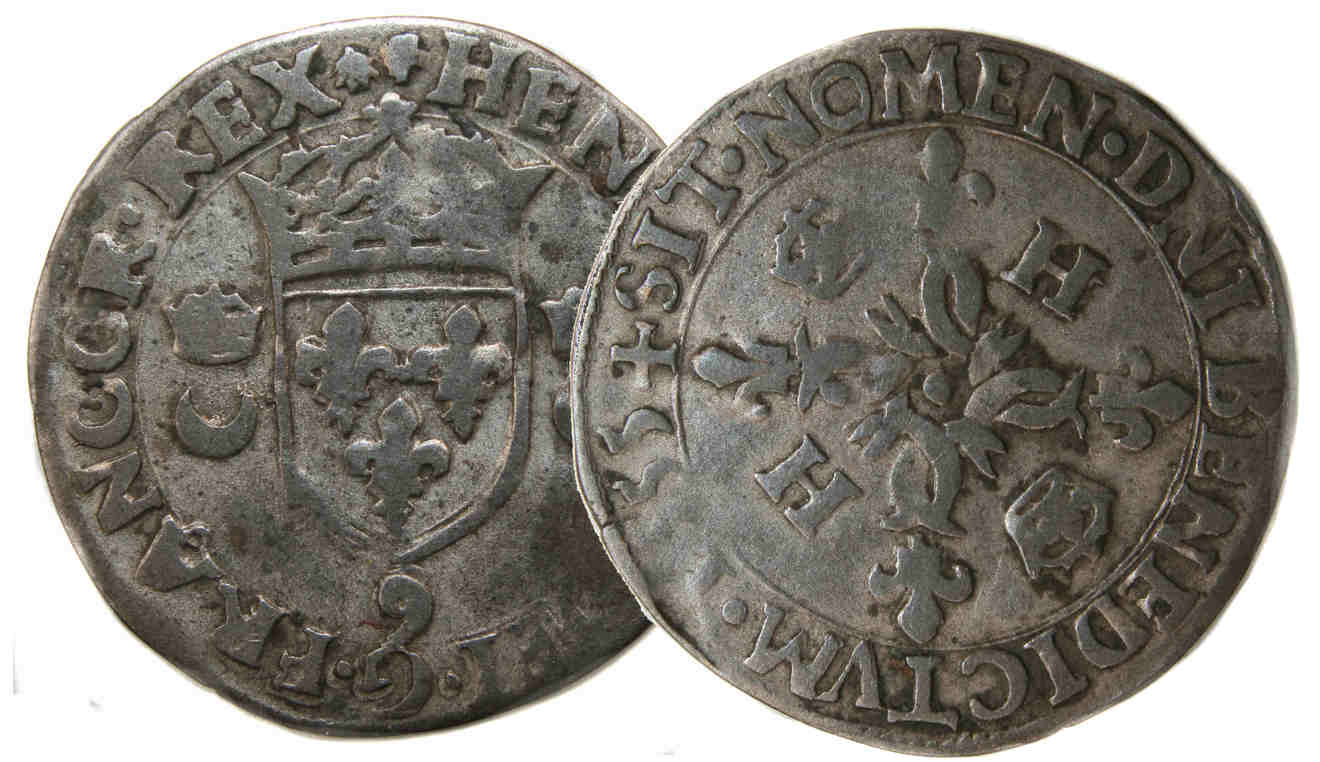 de 1549 à 1557. , Frappés en grand nombre, de faible aloi et ayant circulés intensément les douzains aux croissants sont rarement en bon état. La monnaie reste parfaitement identifiable malgré une certaine usure . Axe des coins : 9h |