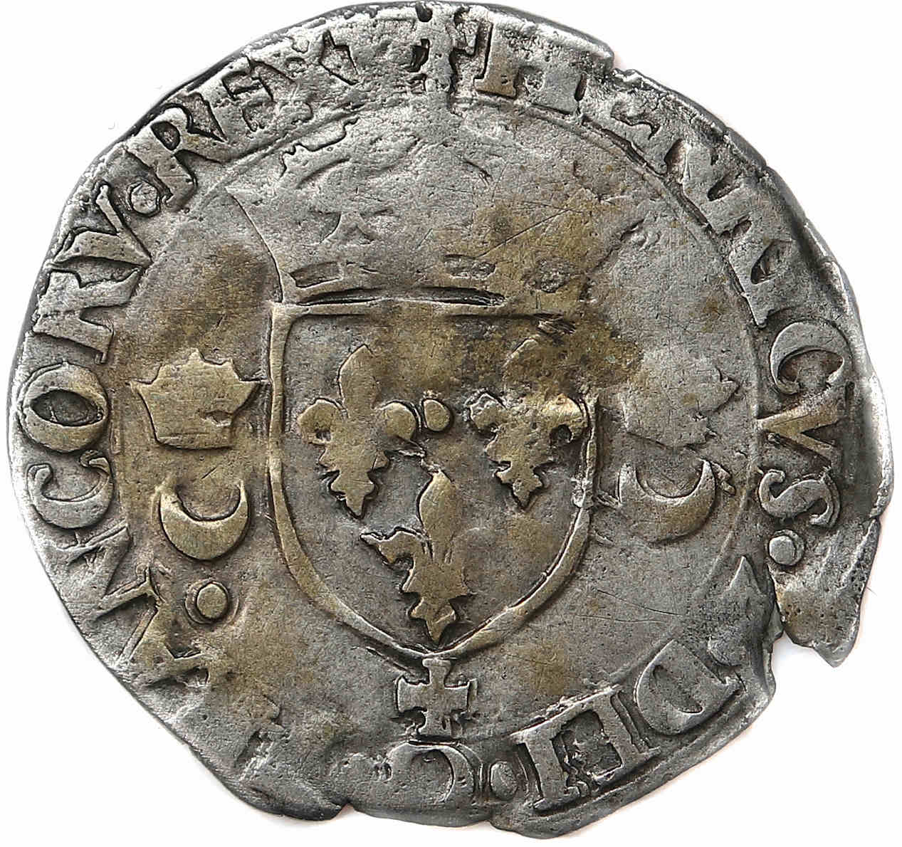 fonctionnement de l'atelier. Frappés en grand nombre, de faible aloi et ayant circulés intensément les douzains aux croissants sont rarement en bon état. La monnaie ne déroge pas et son état est plus que moyen. Le flan est échancré et le poids est assez léger. Le flan est tâché tant au droit qu'au revers Axe des coins : 9 h |