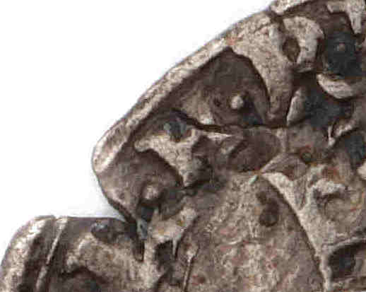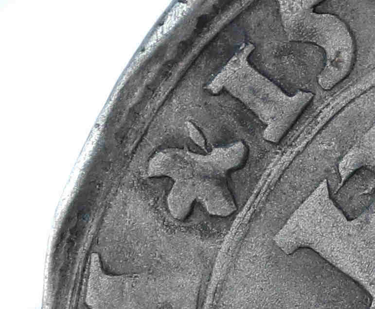 apparait sur les douzains frappés jusqu'en 1560. Le coin est irrégulier et présente au droit quelques plis dans le métal. A noter que dans la titulature du roi le 2 a été oublié, cet oubli est visible sur nombre de douzains de Grenoble au millésime 1550 . Axe des coins : 1 h |