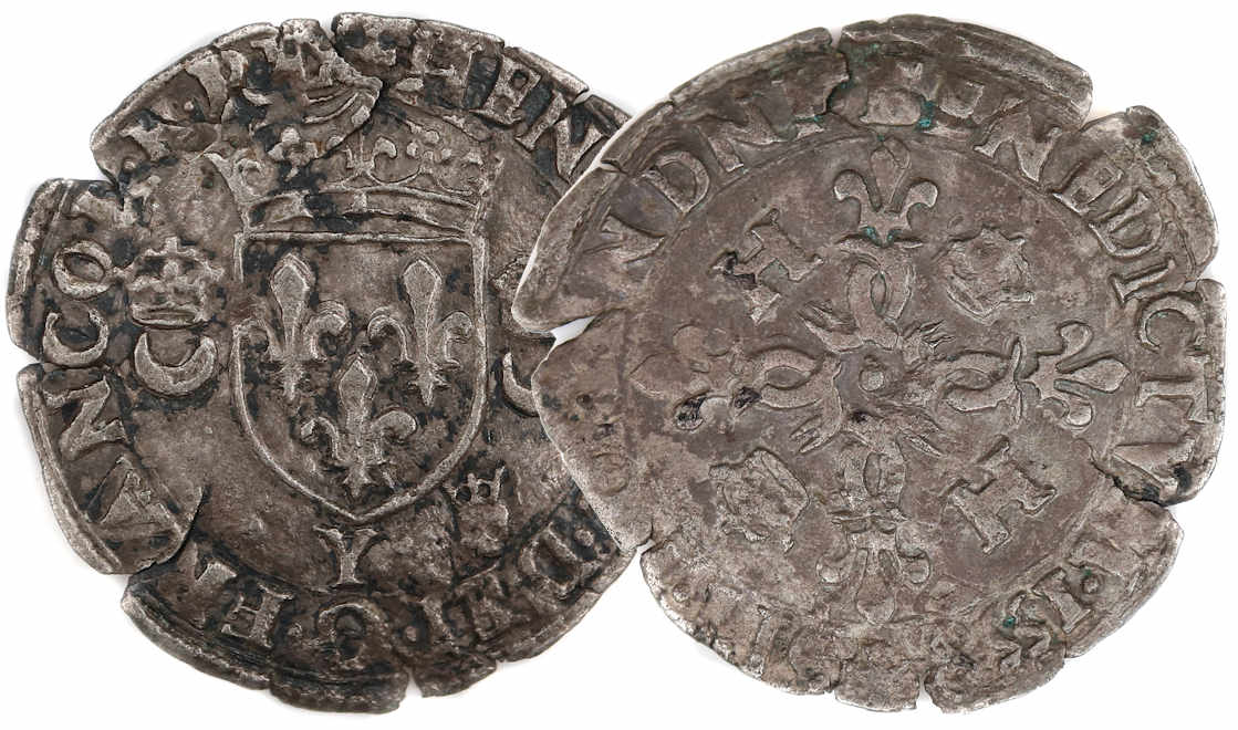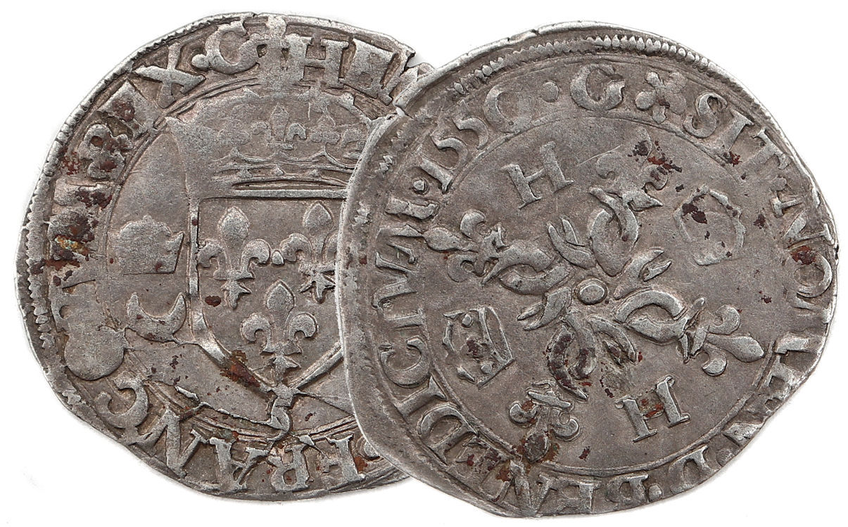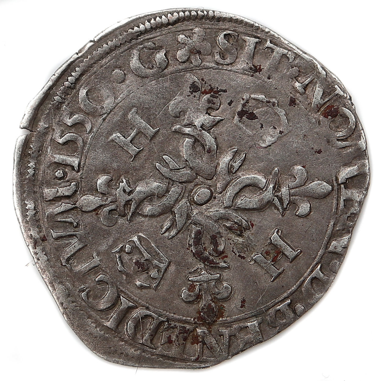 Lettre d'atelier : 3 (au droit sous l'écu) Point secret : Non Millésime : 1550 Chiffre de frappe connu : 466 560 ex Indice de rareté : C |
