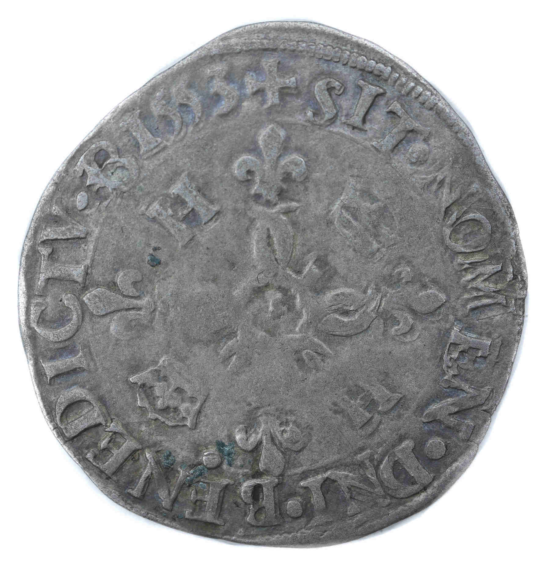 +HENRICVS.2..DEI.G.FRANCOR.REX(dif) 9 Henri II par la grâce de Dieu roi des Francs Ecu de France couronné entre