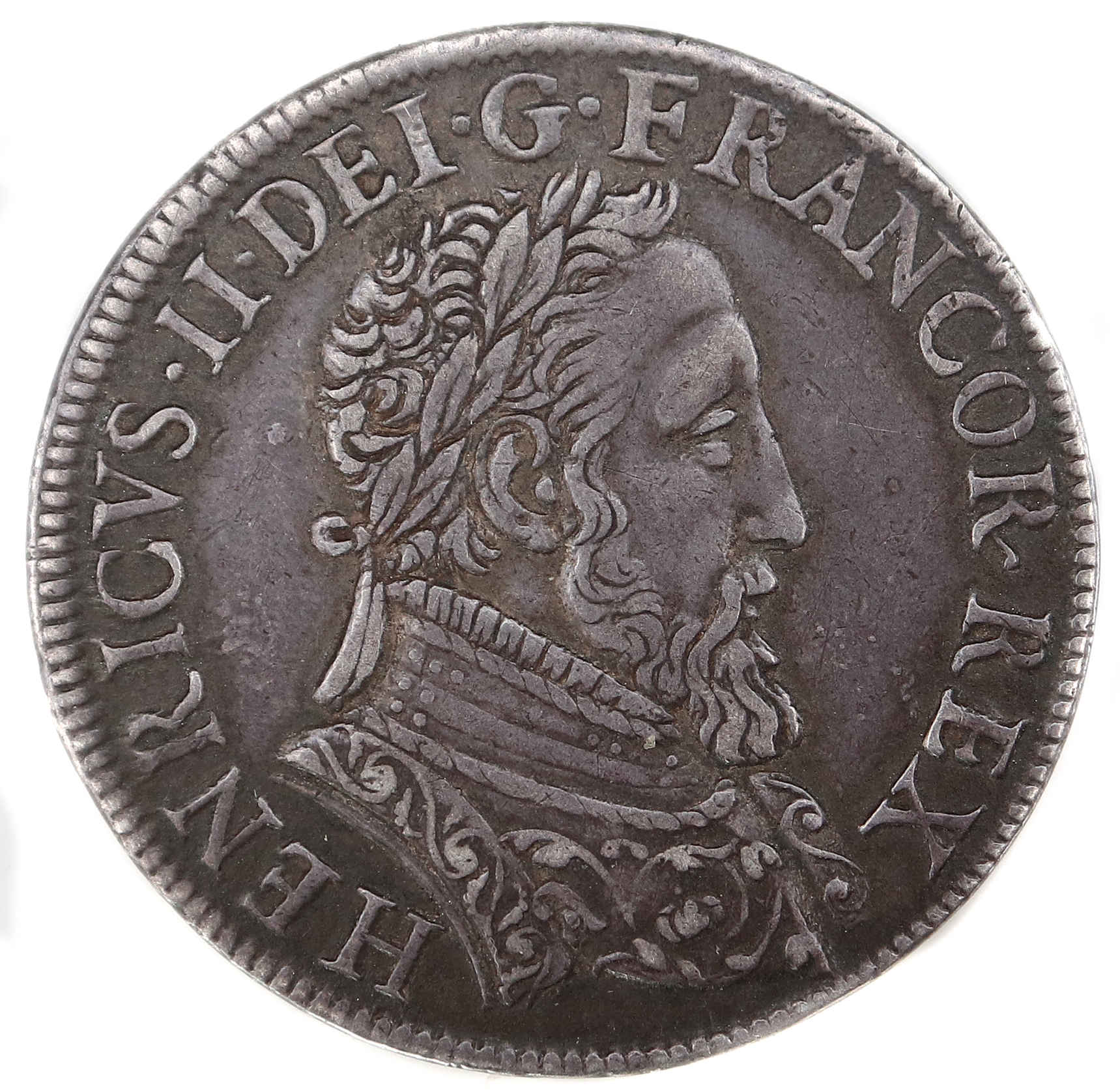 HENRICVS.II..DEI.G.FRANCOR.REX Henri II par la grâce de Dieu roi des Francs Buste du roi,au cou nu tête laurée, à droite |
