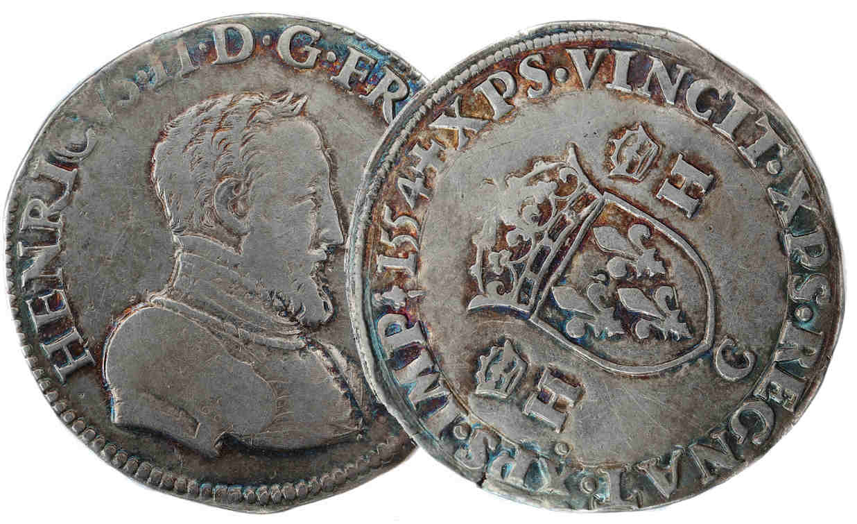 Lettre d'atelier : C (au revers sous l'écu) Point secret : NON Millésime : 1554 Chiffre de frappe connu : 34 884 ex (avec 1/2 testons) Indice de raret&é : R4 |