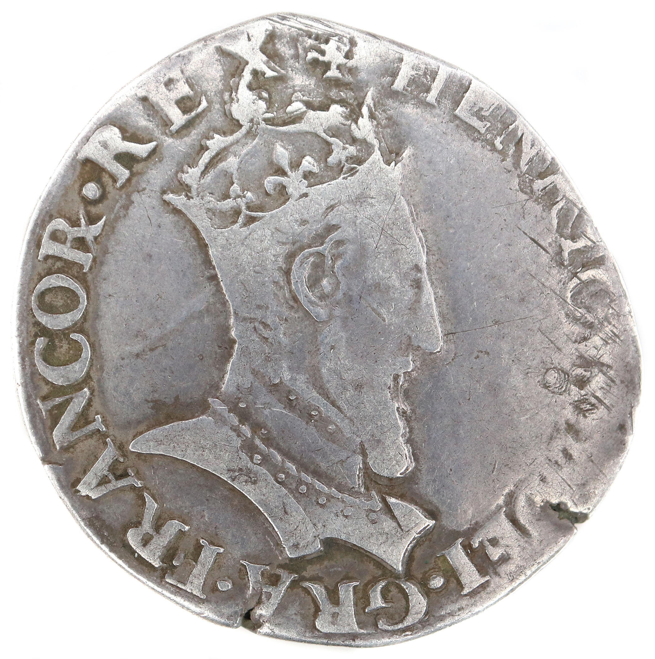 avec des testons à la tête nue pour ce millésime. Provenance LIVE AUCTION CGB de décembre 2021 avec le commentaire : "Ce teston est frappé sur un flan légèrement irrégulier et assez large présentant des éclatements. Léger tréflage au droit. Petite rayure sur la pommette du roi. TTB/TTB+". La monnaie avait précédemment fait l'objet d'une vente par iNumis avec le commentaire suivant : "Seuls 9252 exemplaires frappés (avec les demi-testons) et le second exemplaire connu après celui du Cabinet des Médailles de la Bibliothèque nationale de France. Après vérification, les deux exemplaires sont de coins différents. Axe des coins : 7 h. |
