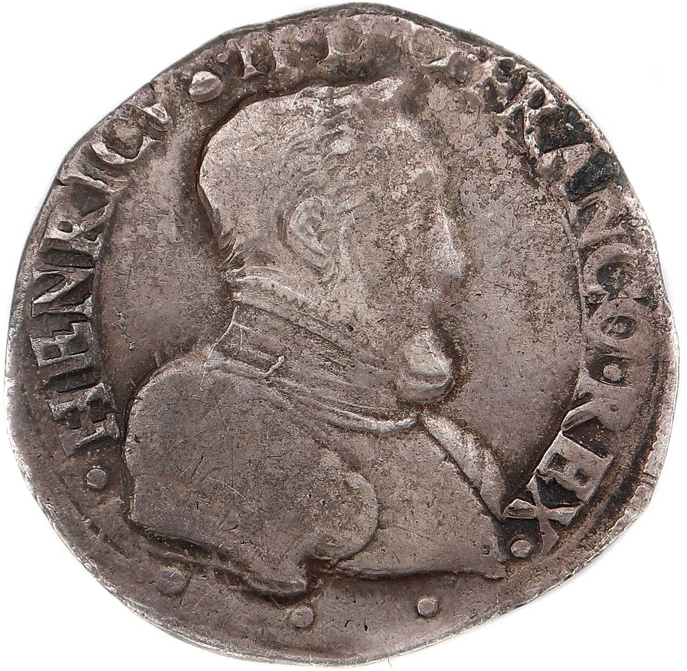 .HENRICVS.II..D.G.FRANCO.REX. Henri II par la grâce de Dieu roi des Francs Buste du roi, tête nue, cuirassé à droite |