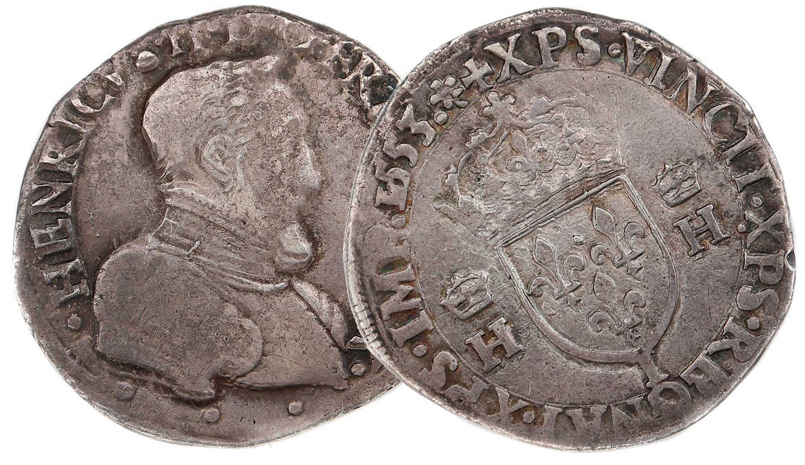 Lettre d'atelier : I (au revers sous l'écu) Point secret : 10éme (au revers) Millésime : 1553 Chiffre de frappe connu : 68 161 ex (avec 1/2 testons du 5éme type) |
