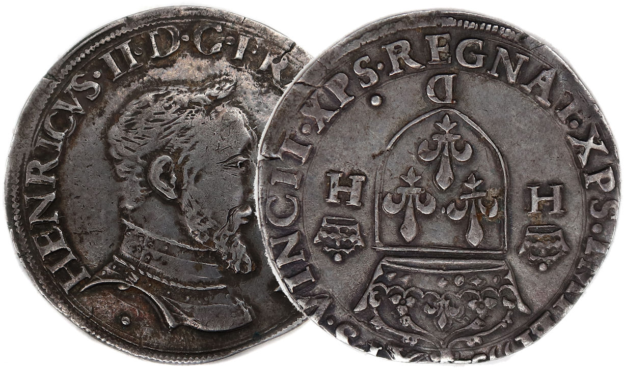 Lettre d'atelier : D (au revers sous l'écu) Point secret : Oui (12 éme au revers) Millésime : 1553 Chiffre de frappe connu : 83 079 ex (avec testons