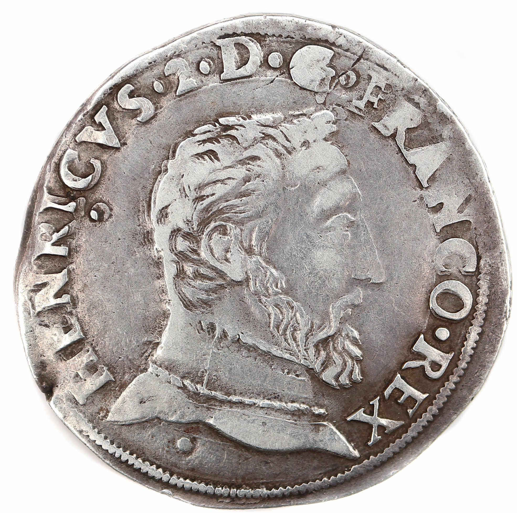 HENRICVS.2..D.G.FRANCO.REX Henri II par la grâce de Dieu roi des Francs Buste du roi avec un col, t^te