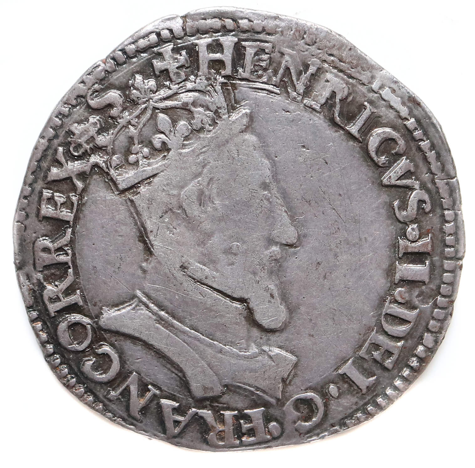 +HENRICVS.II..DEI.G.FRANCOR.REX.(dif)S. Henri II par la grâce de Dieu roi des Francs Buste du roi, tête couronnée, cuirassé à droite |