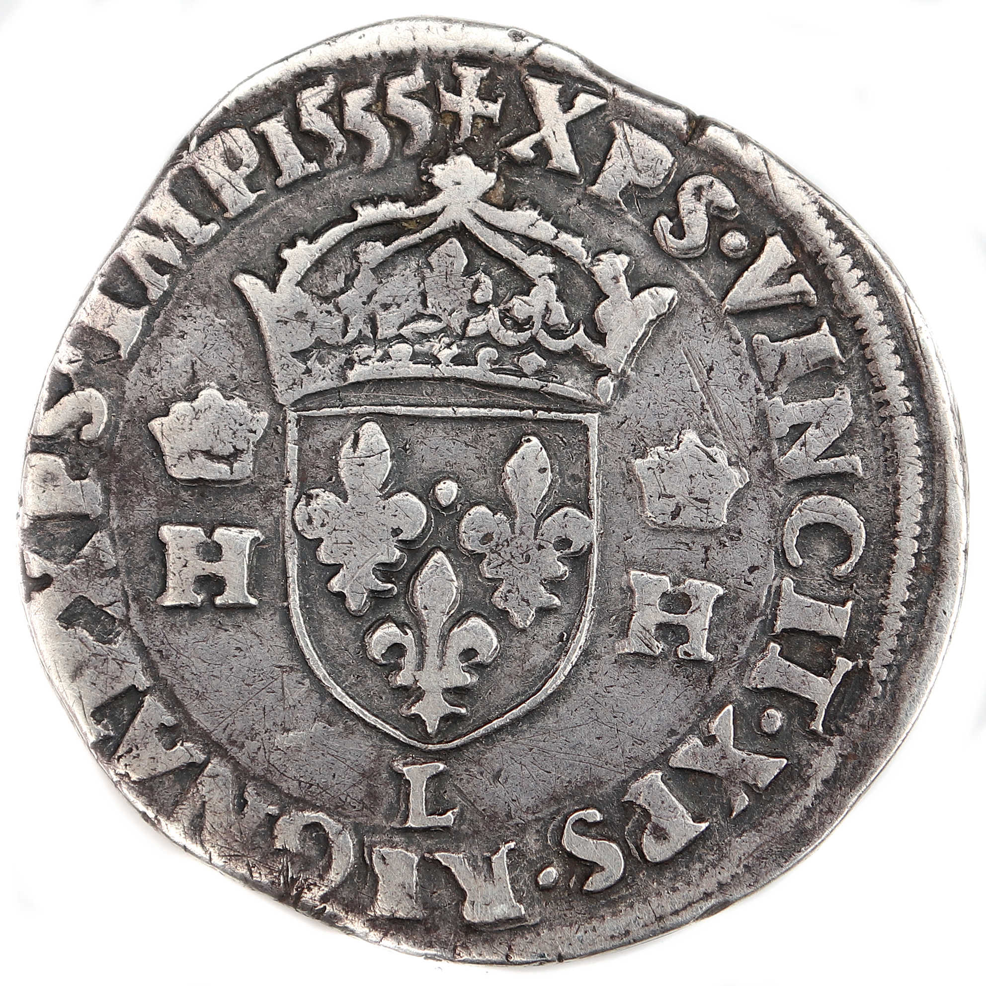 Lettre d'atelier : L (au revers sous l'écu) Point secret : Non Millésime : 1555 Chiffre de frappe connu : 78 285 ex (avec 1/2 testons et
