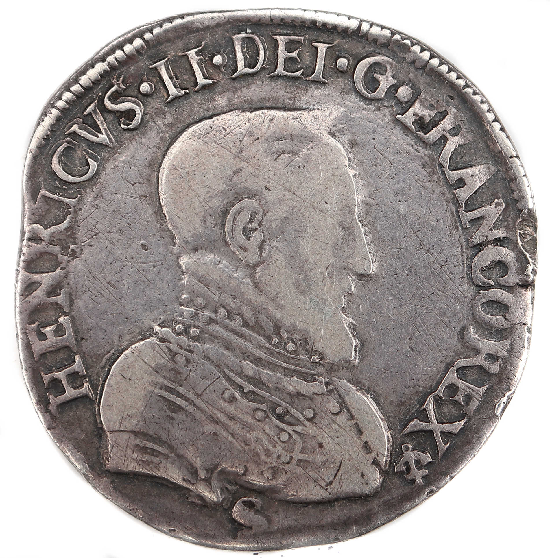 HENRICVS.II..DEI.G.FRANCO.REX (ancre) S Henri II par la grâce de Dieu roi des Francs Buste du roi, tête nue, cuirassé à droite |