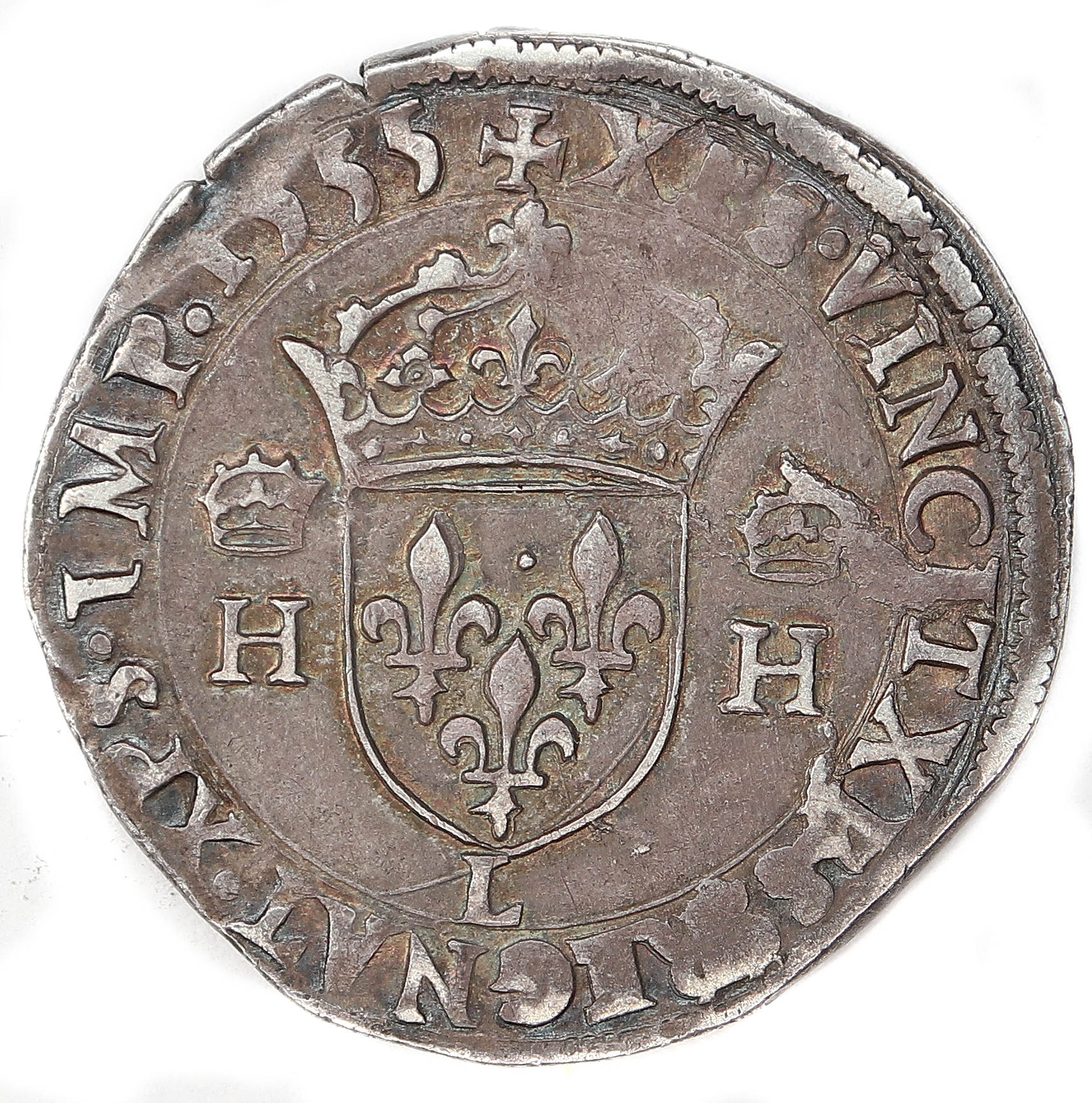 Lettre d'atelier : L (au revers sous l'écu) Point secret : Non Millésime : 1555 Chiffre de frappe connu : 78 285 ex (avec 1/2 testons et testons à la tête couronnée) Indice de rareté : R |