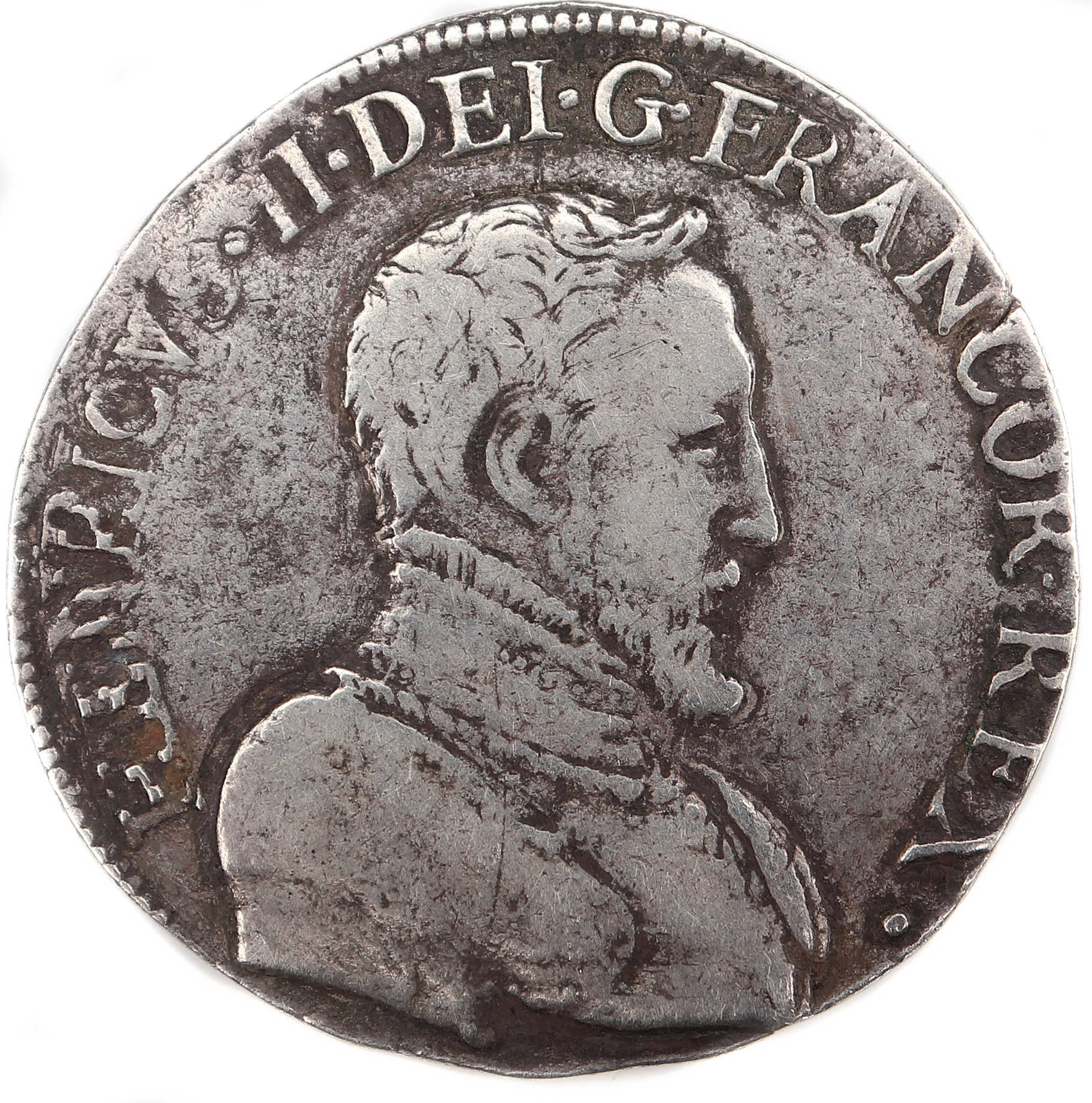 HENRICVS.II..DEI.G.FRANCOR.REX. S Henri II par la grâce de Dieu roi des Francs Buste du roi, tête nue, cuirassé à droite |