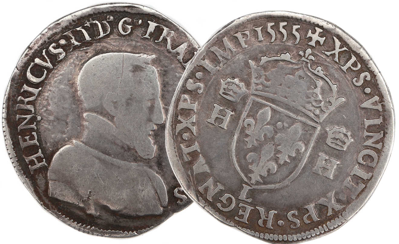 Lettre d'atelier : L (au revers sous l'écu) Point secret : Non Millésime : 1555 Chiffre de frappe connu : 78 285 ex (avec 1/2 testons et