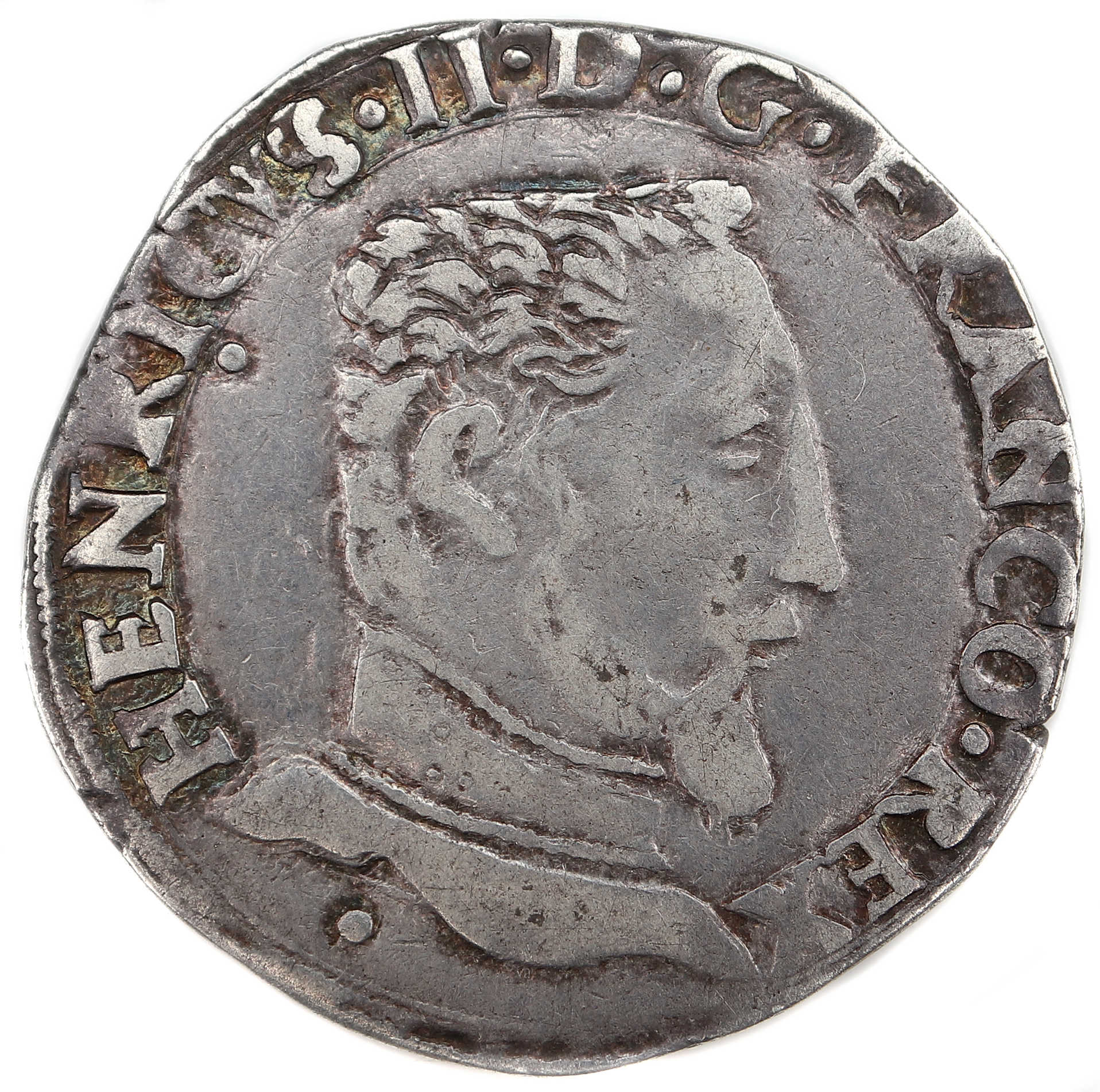 HENRICVS.II..D.G.FRANCO.REX Henri II par la grâce de Dieu roi des Francs Buste du roi avec un col, tête