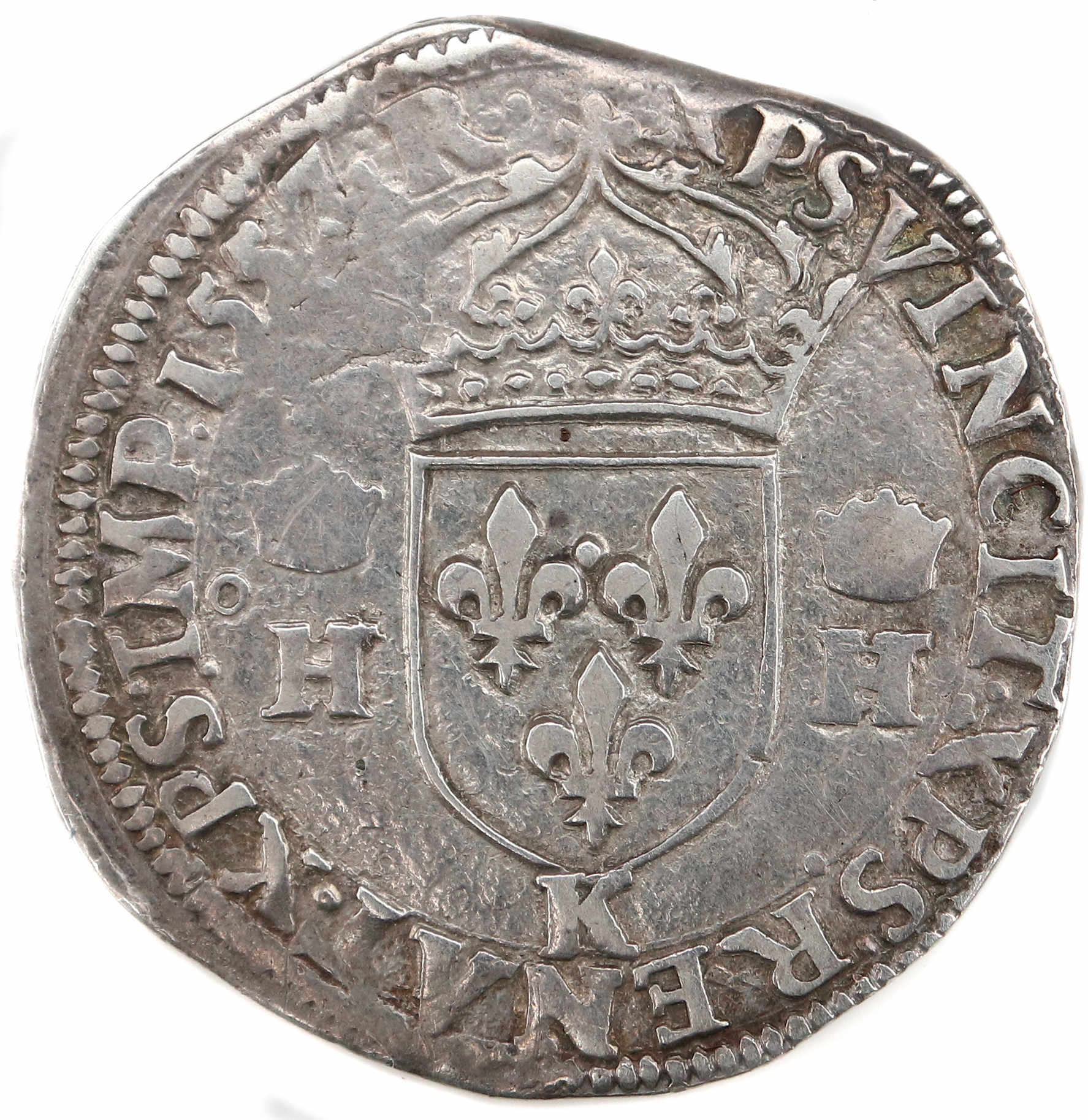 Lettre d'atelier : K (au revers sous l'écu) Point secret : Non Millésime : 1557 Chiffre de frappe connu : 26