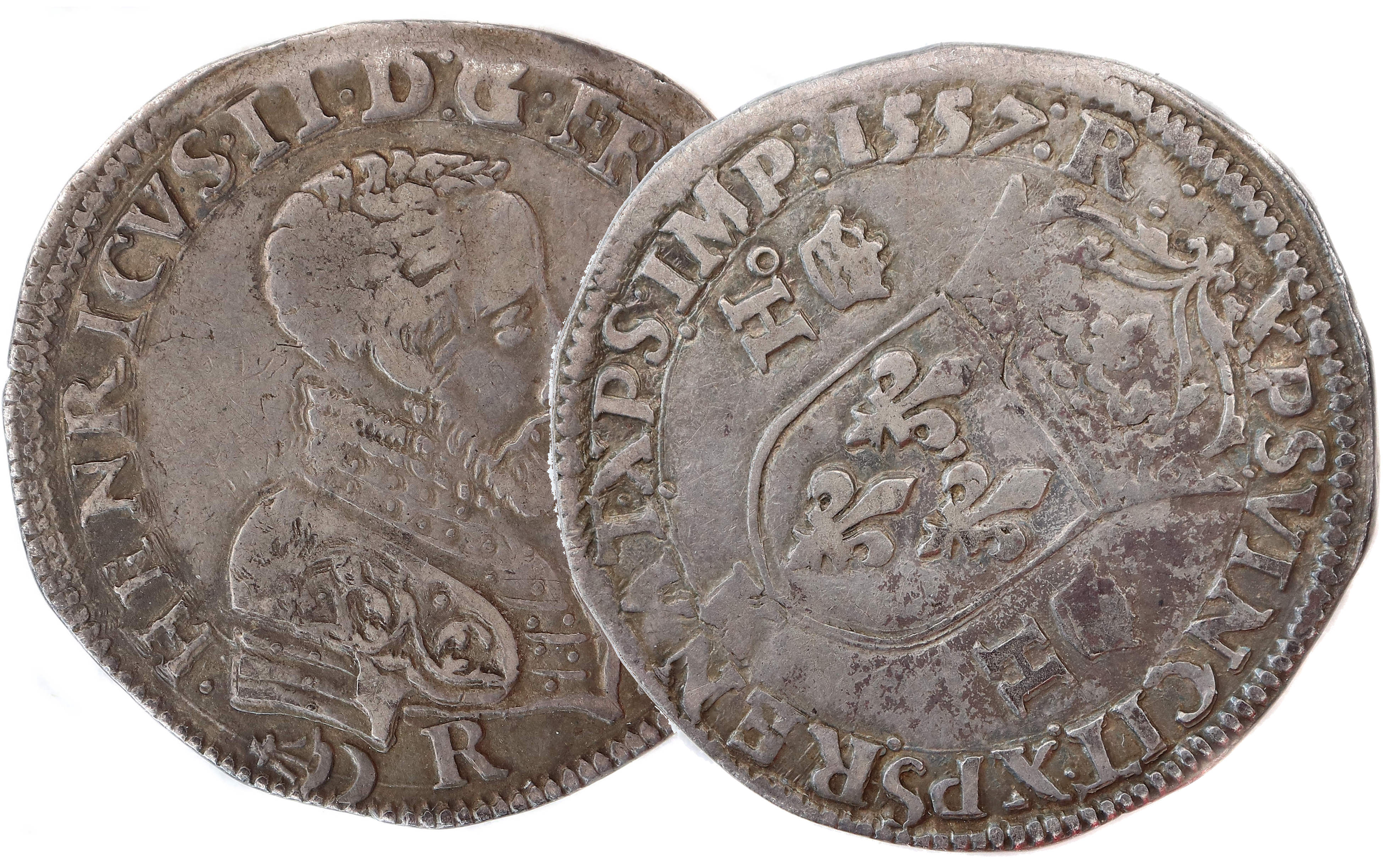 1557, des testons sur lesquels le roi porte une cuirasse à