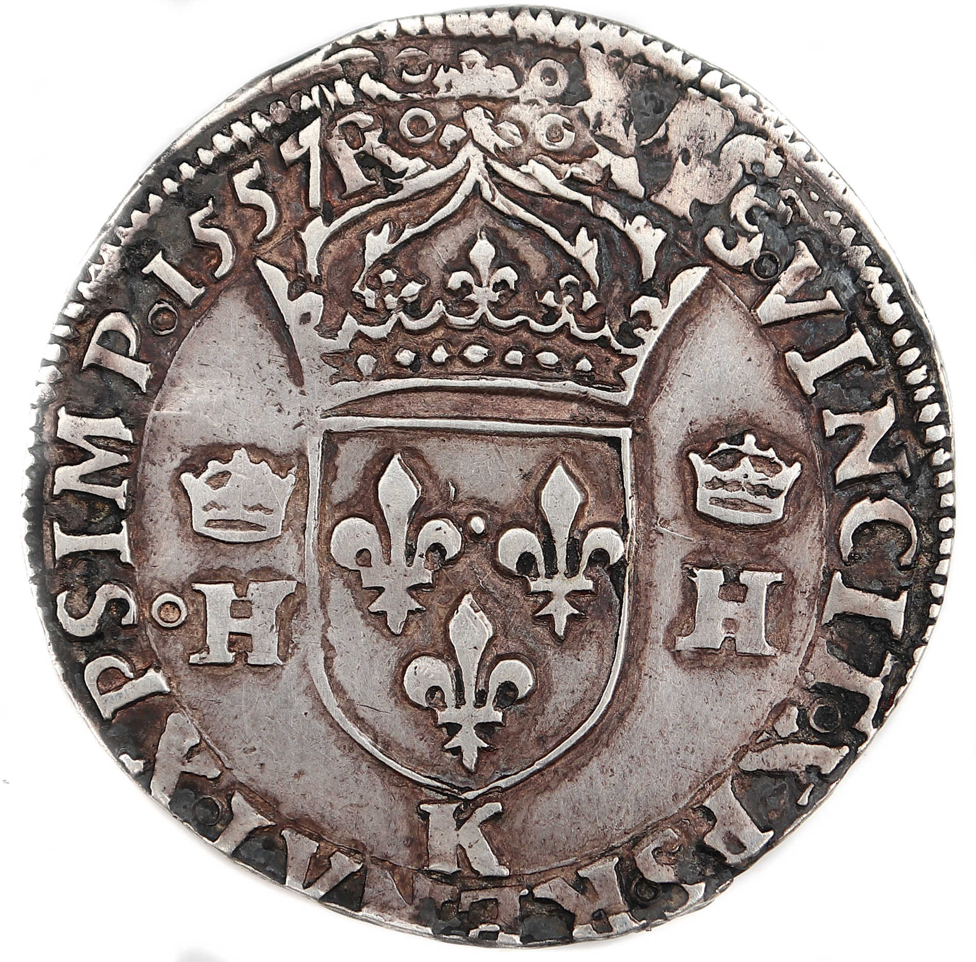 Lettre d'atelier : K (au revers sous l'écu) Point secret : Non Millésime : 1557 Chiffre de frappe connu : 26