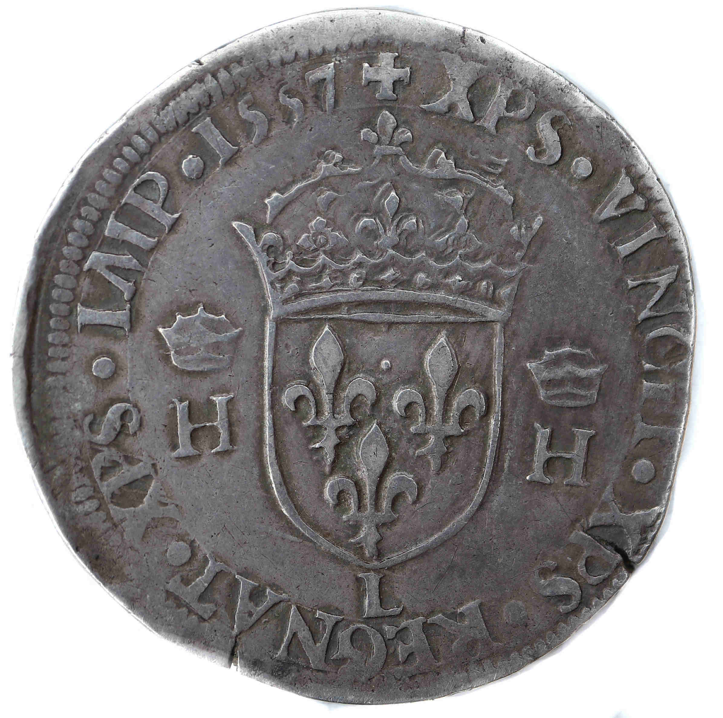 Lettre d'atelier : L (au revers sous l'écu) Point secret : Non Millésime : 1557 Chiffre de frappe connu : 100