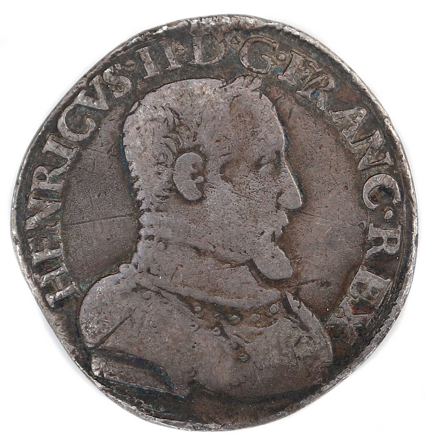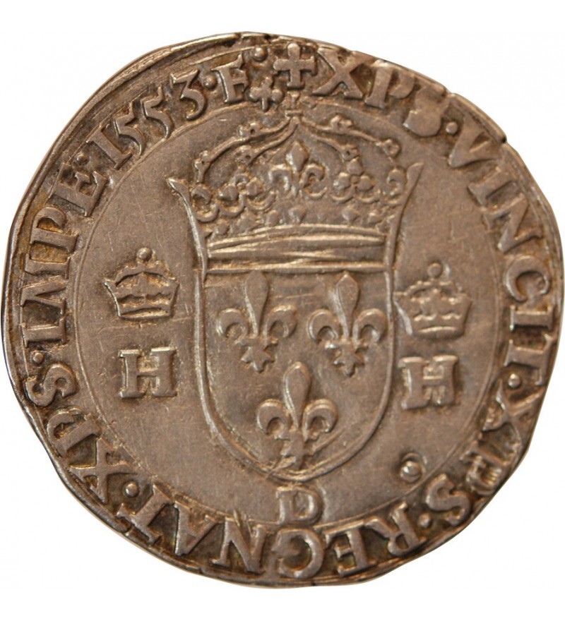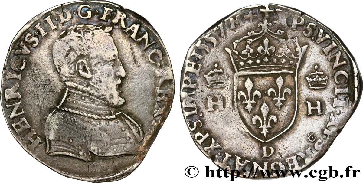 HENRICVS.II..DG.FRANC.REX Henri II par la grâce de Dieu roi des Francs Buste du roi, tête nue, cuirassé à droite |