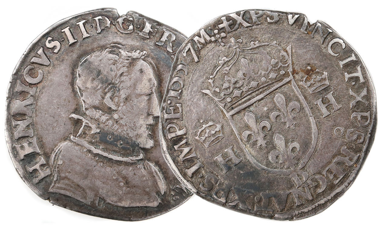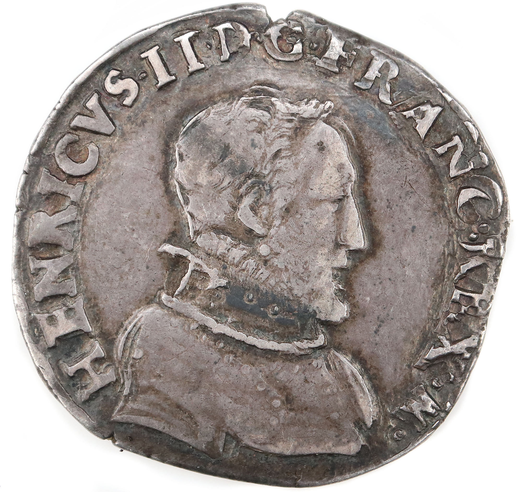 HENRICVS.II..DG.FRANC.REX.(dif) Henri II par la grâce de Dieu roi des Francs Buste du roi, tête nue, cuirassé à droite |
