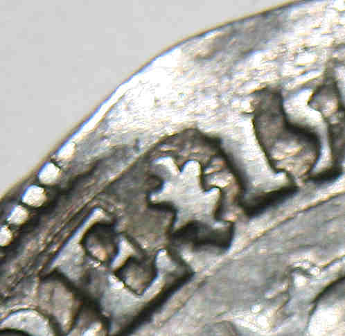 +XPS.VINCIT.XPS.REGNAT.XPS.IMPE(dif).1557 Christ vainc, Chrisr règne. Christ commande. Ecu de France couronné accosté de 2 H couronnées. |