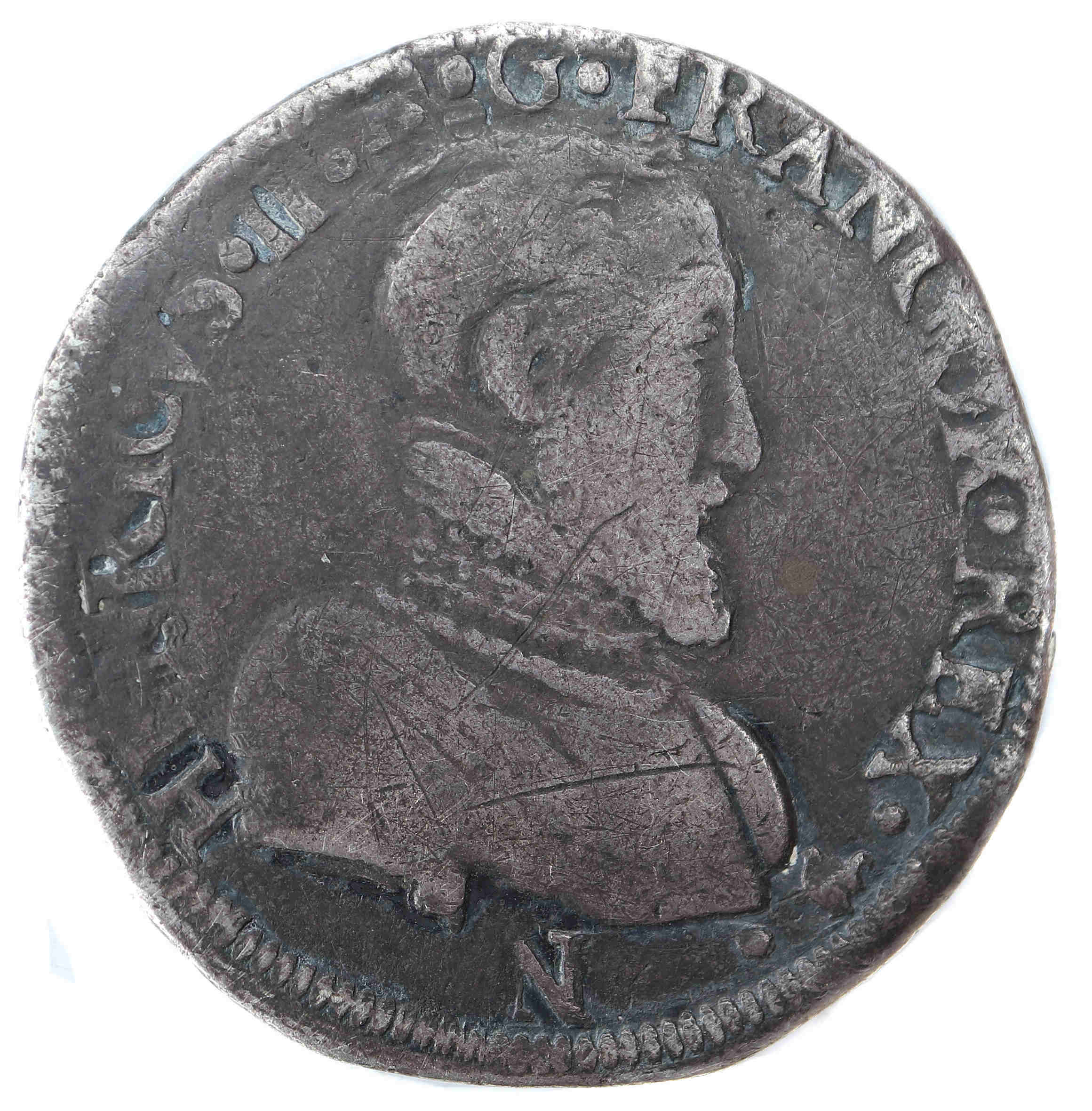 1559, 1560 et 1561 les testons furent frappés au buste lauré. Le flan est régulier mais la monnaie présente une usure assez importante ce qui explique le poids relativement léger. Le revers reste malgré tout assez beau. Axe des coins : 5 h. (voir autre exemplaire). |