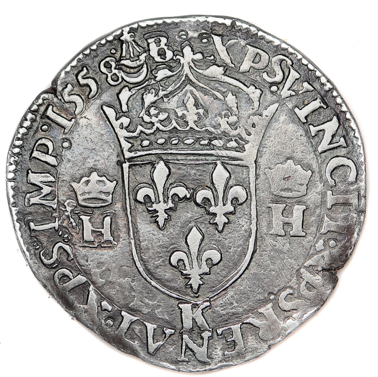 Lettre d'atelier : K (au revers sous l'écu) Point secret : Non Millésime : 1558 Chiffre de frappe connu : 86