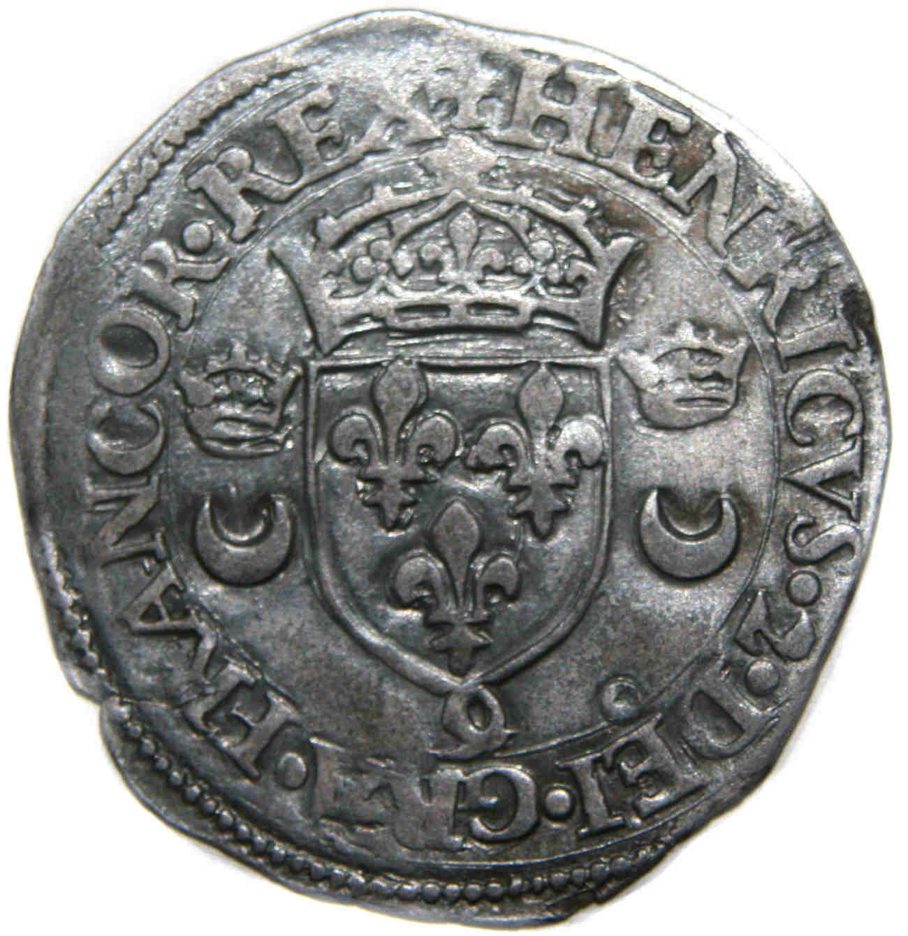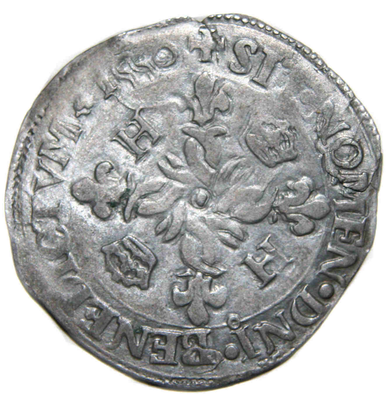 Lettre d'atelier : 9 (au droit sous l'écu) Point secret : NON Millésime : 1550 Chiffre de frappe connu : 2 370 960 ex Indice de rareté : C |