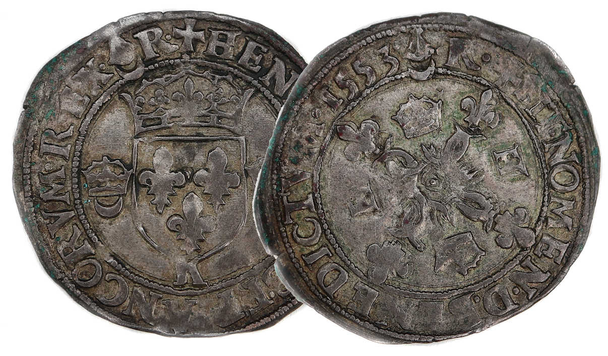 Lettre d'atelier : K (au droit sous l'écu) Point secret : NON Millésime : 1553 Chiffre de frappe connu : 67 680 ex Indice de rareté : R5 |