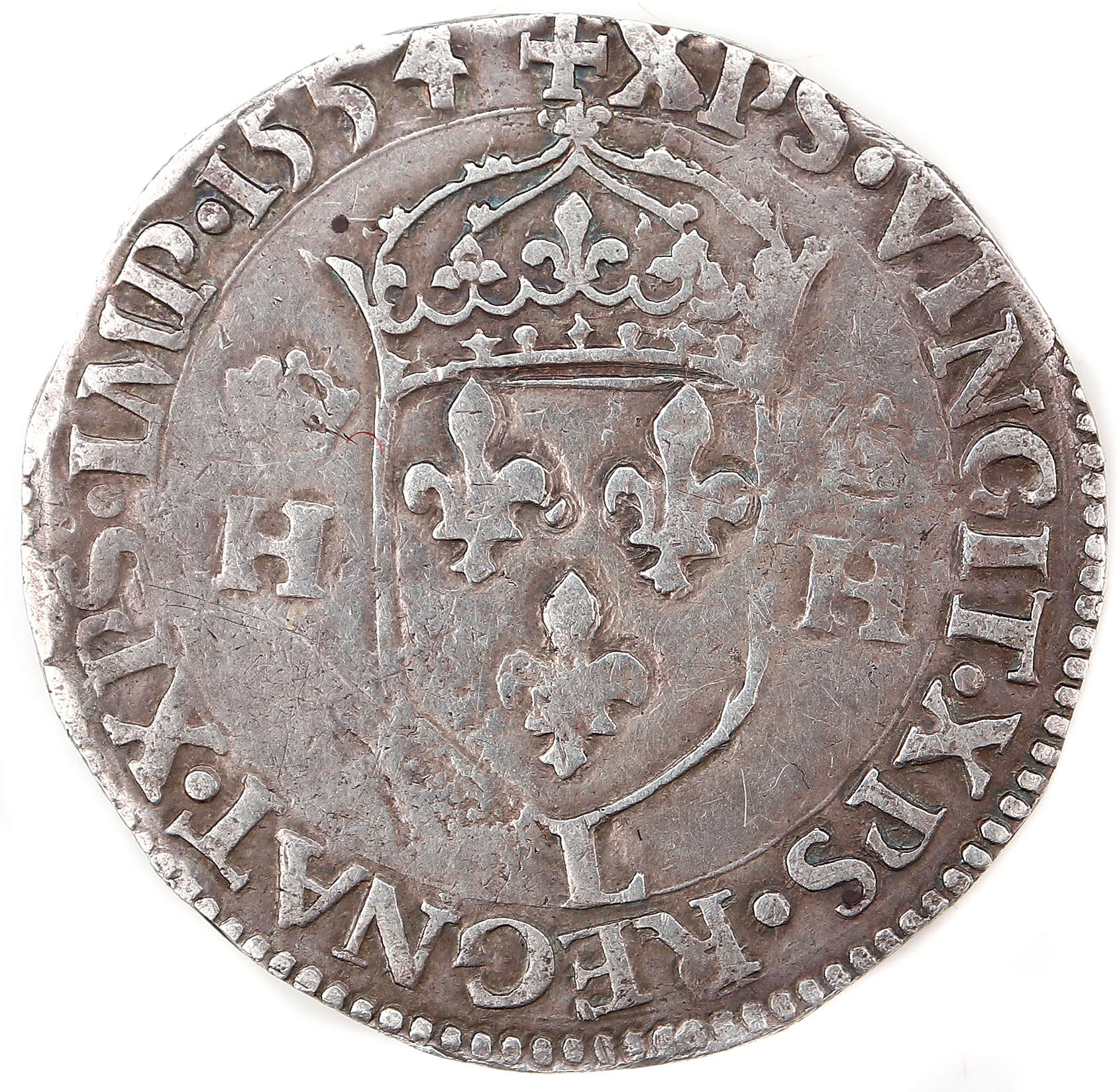 Lettre d'atelier : L (au revers sous l'écu) Point secret : Non Millésime : 1555 Chiffre de frappe connu : 78