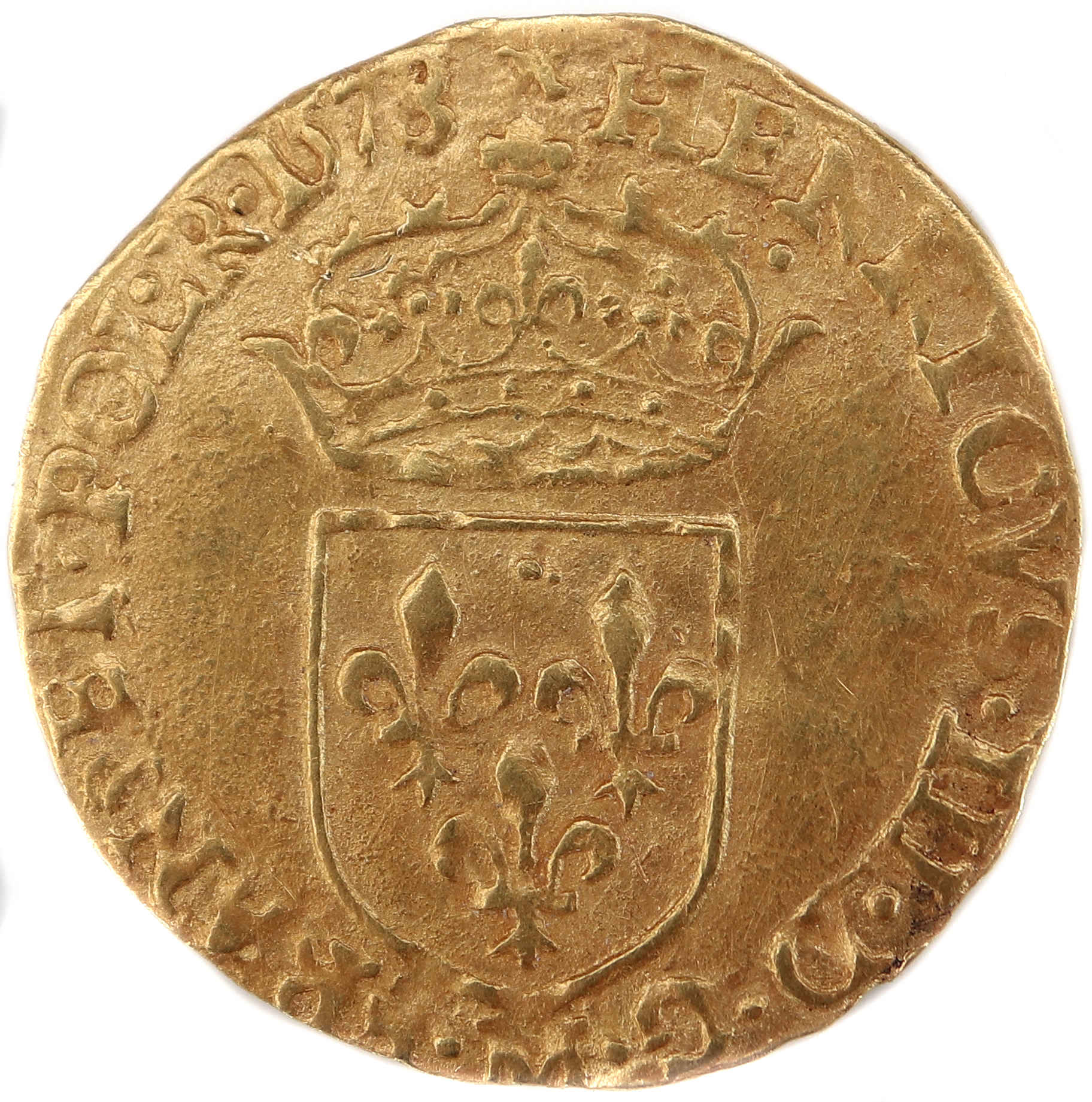 III.D.G.M..FRAN(dif)ET.POL.R.1578 Henri III par la grâce de Dieu roi des Francs et des Polonais Ecu de France couronné |