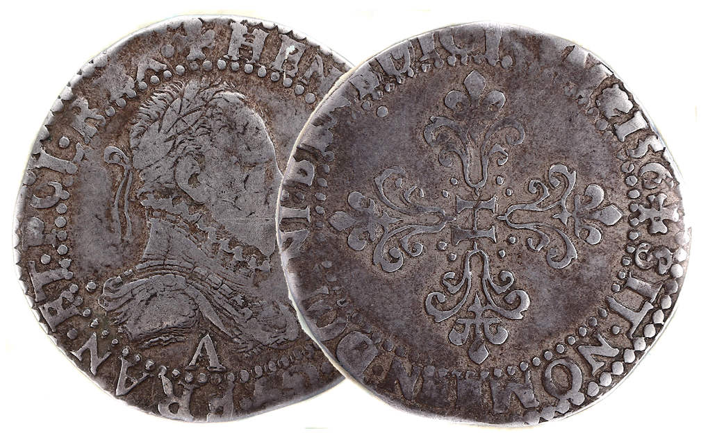 plat ou gaufré furent frappés en grande quantité à PARIS de 1575 à 1588. L'effigie présente une certaine usure, visible également au