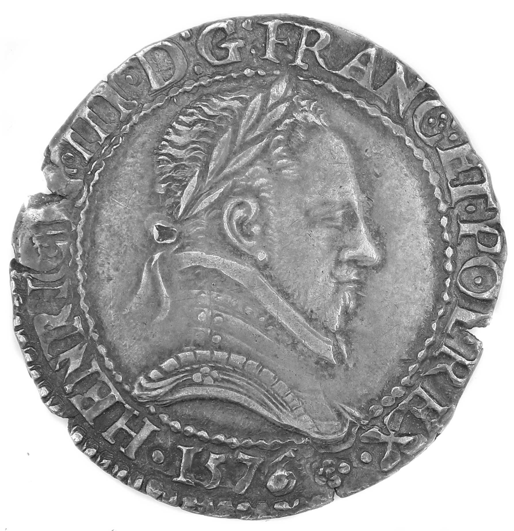 .HENRICVS III.D G.FRANC.ET.POL.REX.(dif)1576 Henri III par la grâce de Dieu roi des Francs et des Polonais Buste lauré et cuirassé, au col