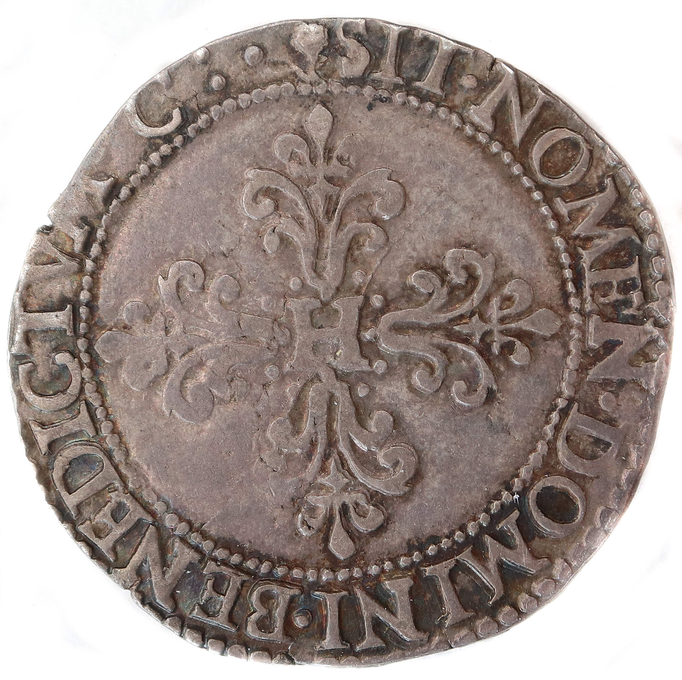 et 1589. Le flan est un peu irrégulier. La monnaie est bien venue à la frappe. Il manque le point d'atelier. Provenance : MDC décembre 2022. Axe des coins : 4 h. |