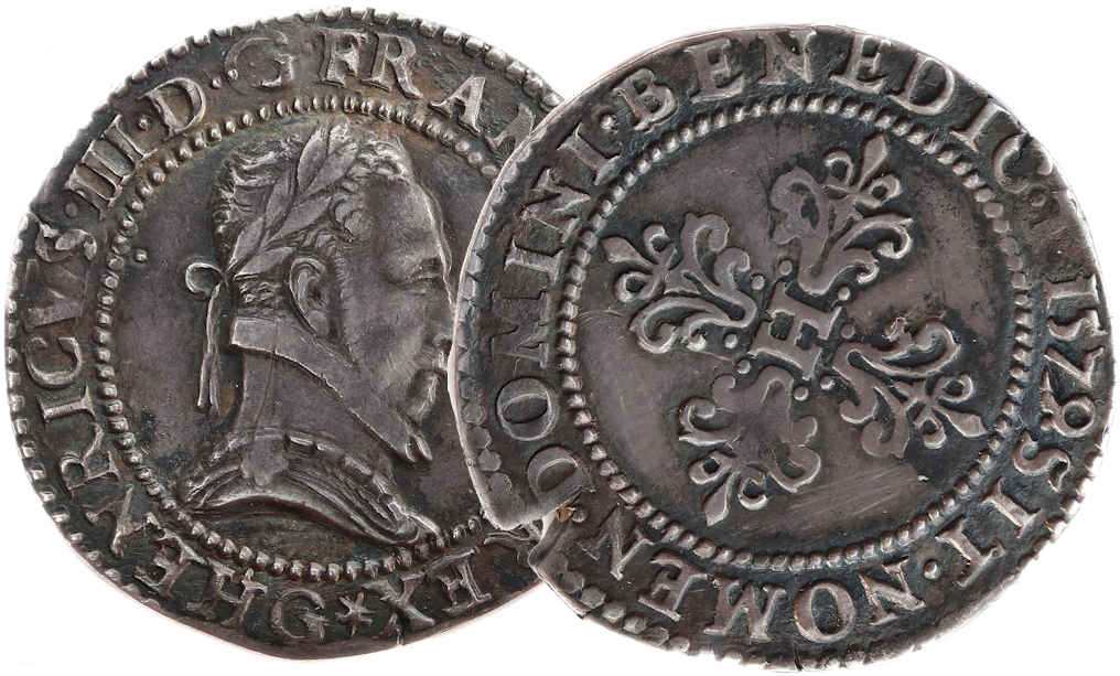 droit) Millésime : 1579 Chiffre de frappe connu : 23 615 ex (avec francs et 1/4 ) Indice de rareté : R4 |