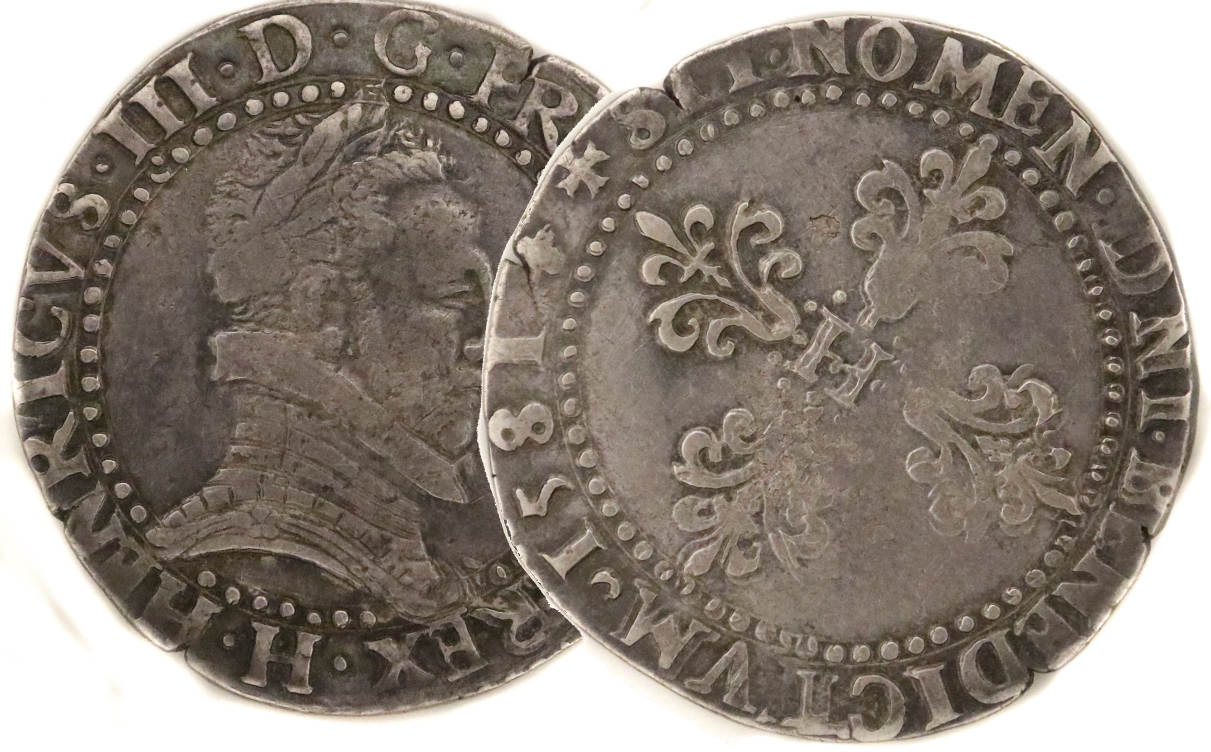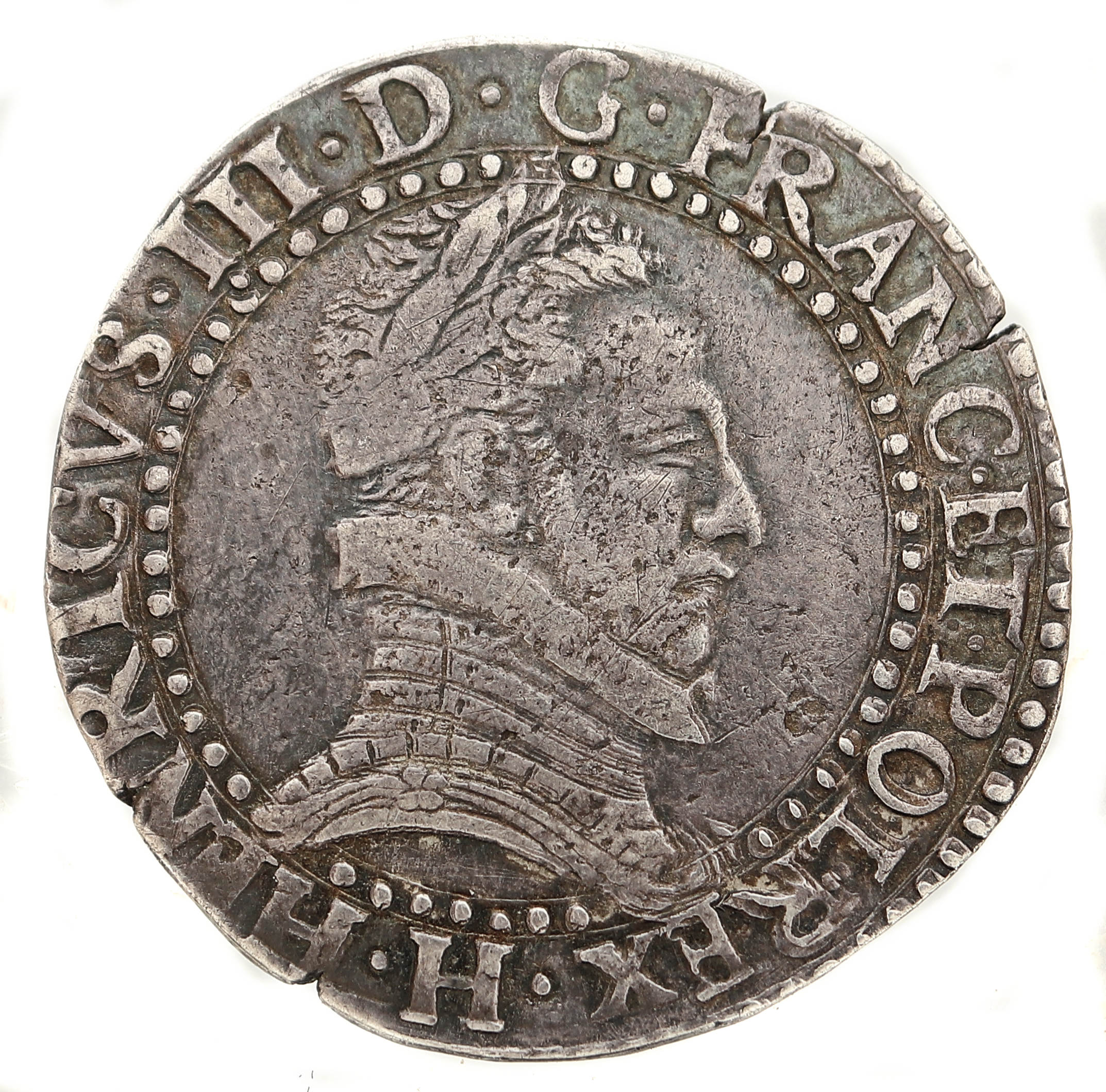 HENRICVS III.D G.FRANC.ET.POL.REX H Henri III par la grâce de Dieu roi des Francs et des Polonais Buste lauré et cuirassé, au col