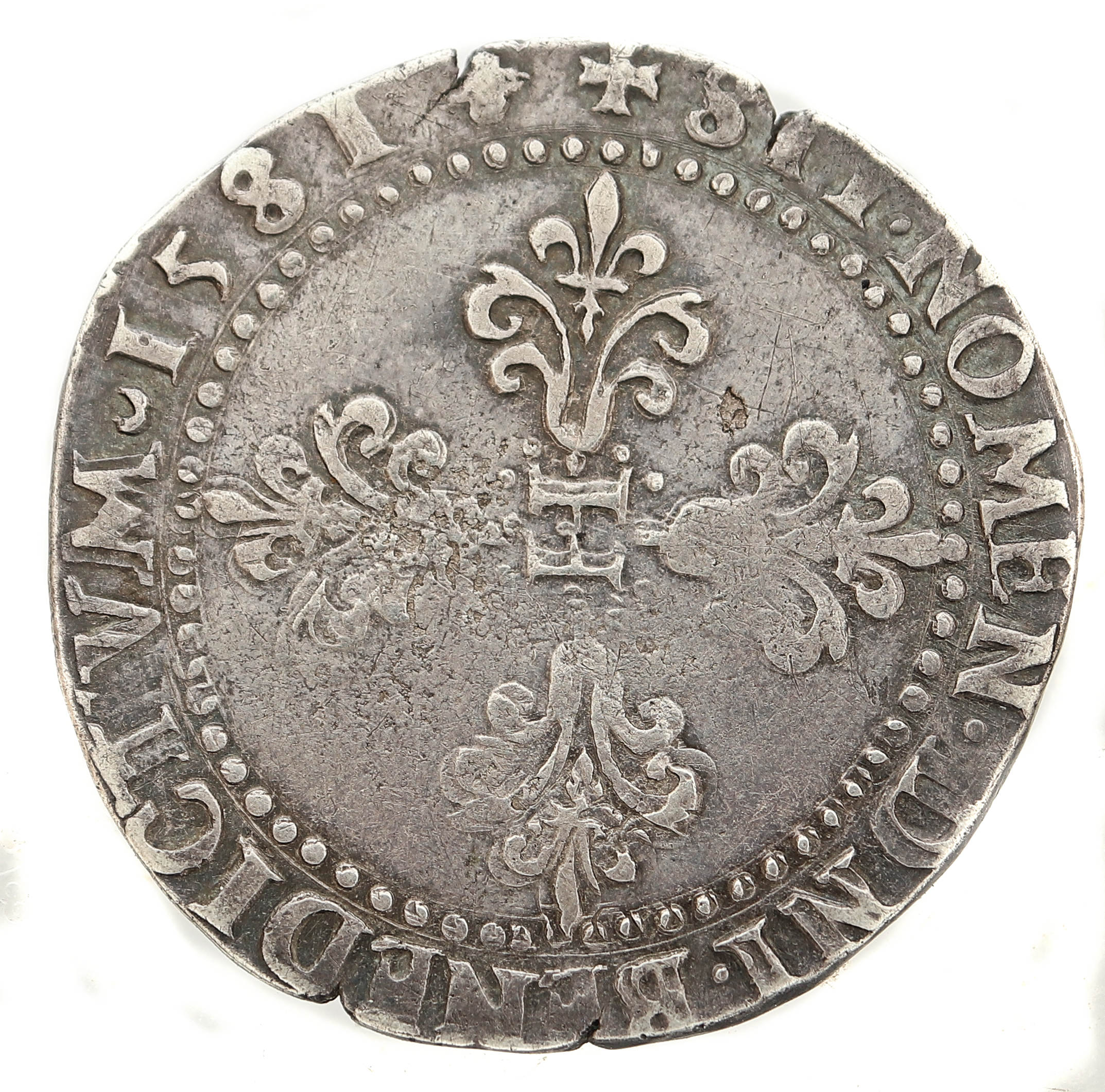 droit dans la légende sous le buste) Point secret : 9éme (au droit) Millésime : 1581 Chiffre de frappe connu : 10 246 ex (avec francs et 1/4 de franc) |