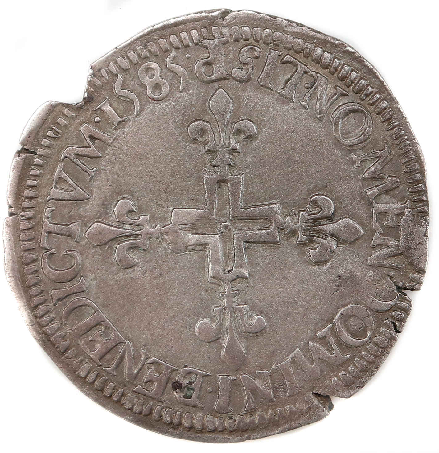 12 h au revers) Point secret : NON Millésime : 1585 Chiffre de frappe connu : 65 920 ex (avec sols Indice de rareté : R2 |