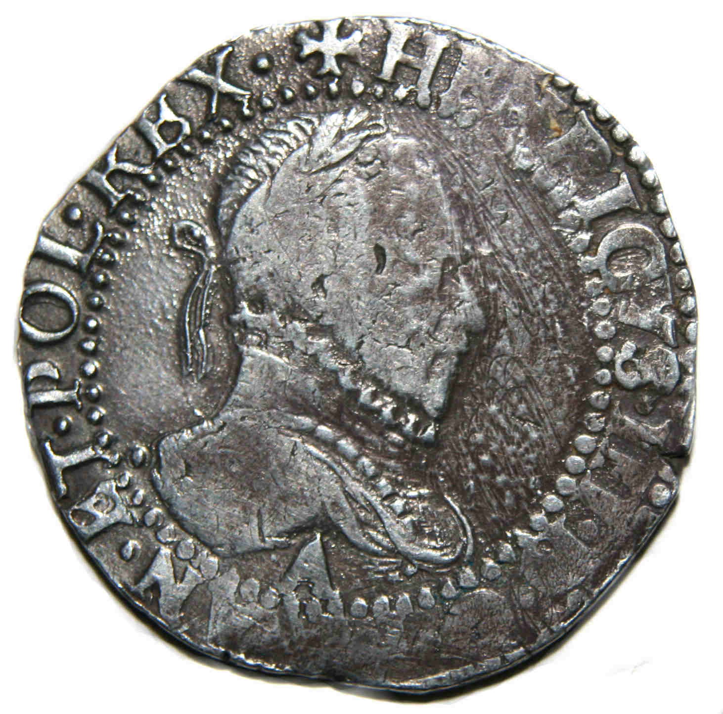 plat furent frappés en grande quantité à PARIS de 1575 à 1588. Le revers est correct mais le droit présente un défaut assez important sur la moitié droite. |
