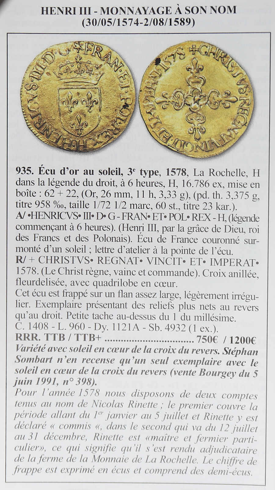 revers. Stéphan Sombart n’en recense qu’un seul exemplaire avec le