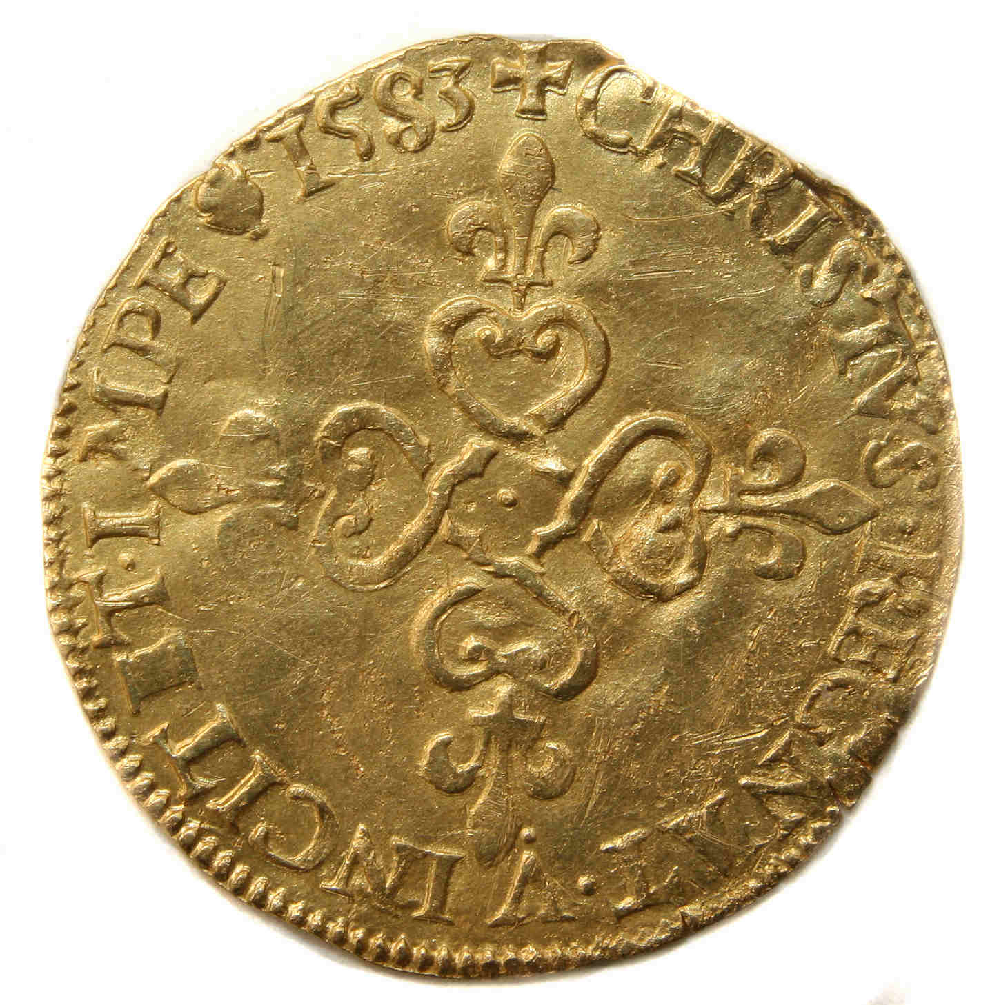 CHRISTVS..REGNAT.VINCIT.ET.IMPE(dif)1583 Christ règne, vainc et commande Croix cléchée fleurdelisée |