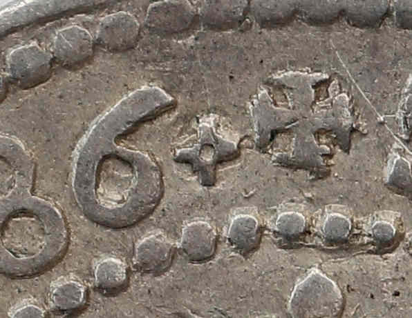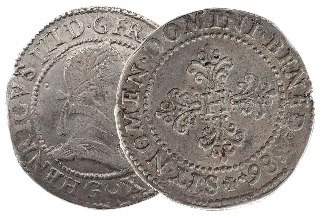 monnaies frappées en 1586 par la présence d'un croissant (voir un exemplaire au millésime 1588 sans croissant), différent du